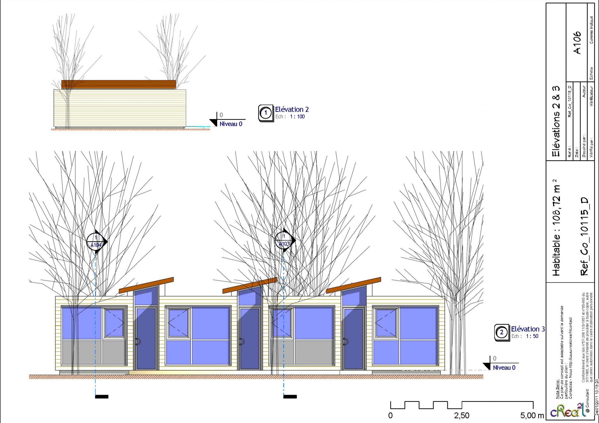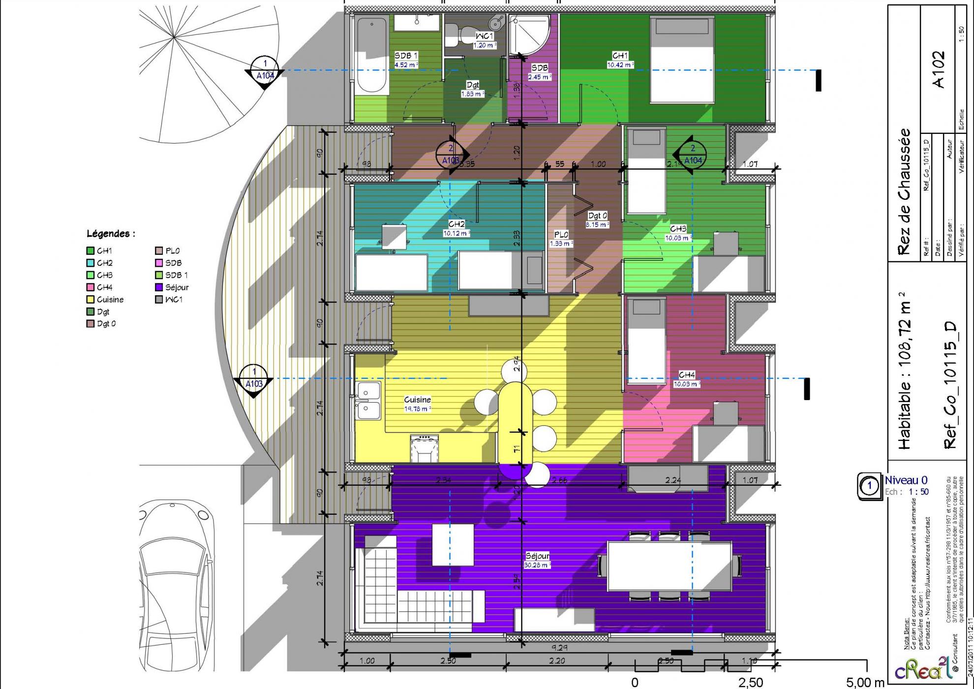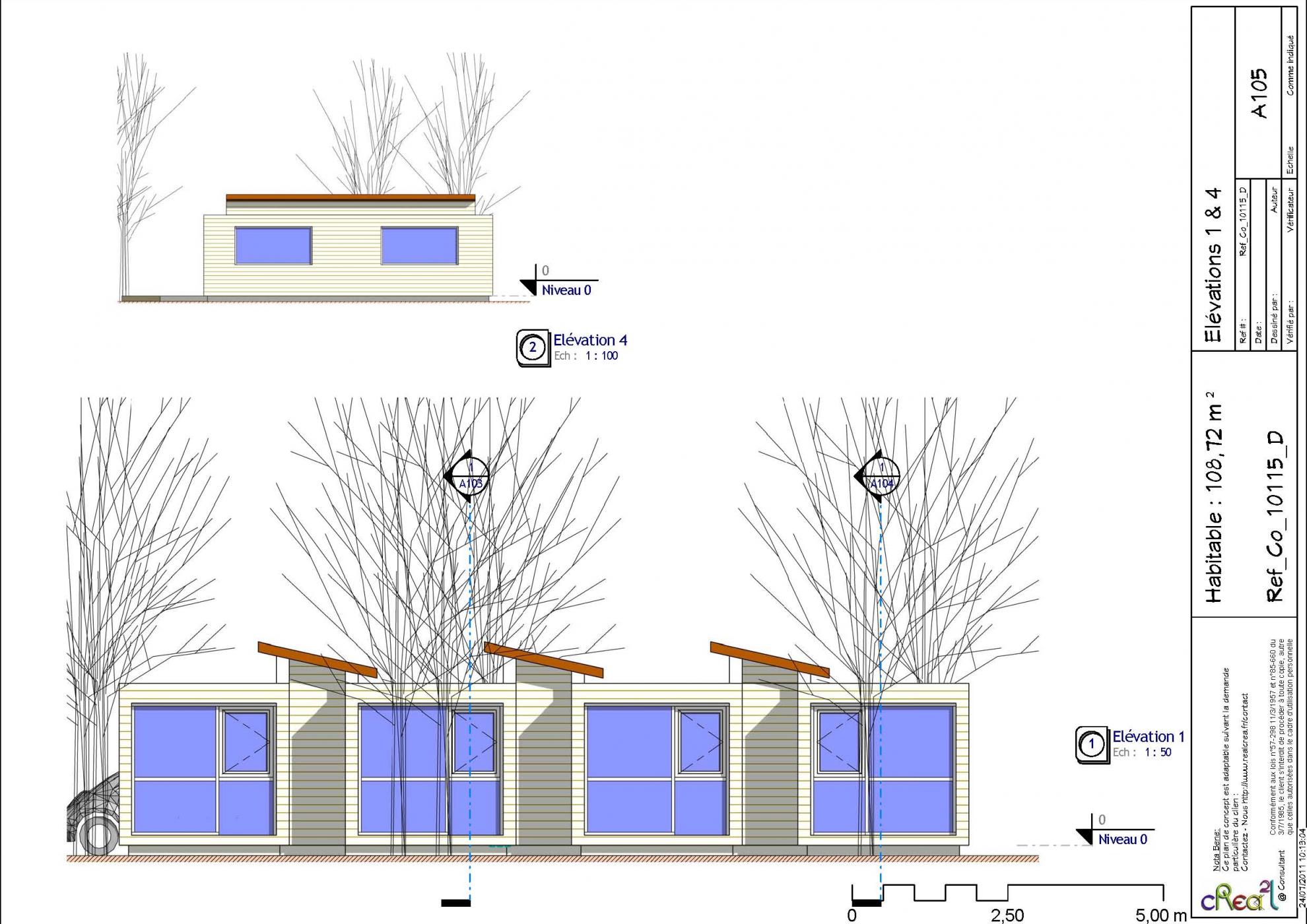 Plan Co_10115_D : Maison container plain-pied, 4 chambres, 108 m² habitables.