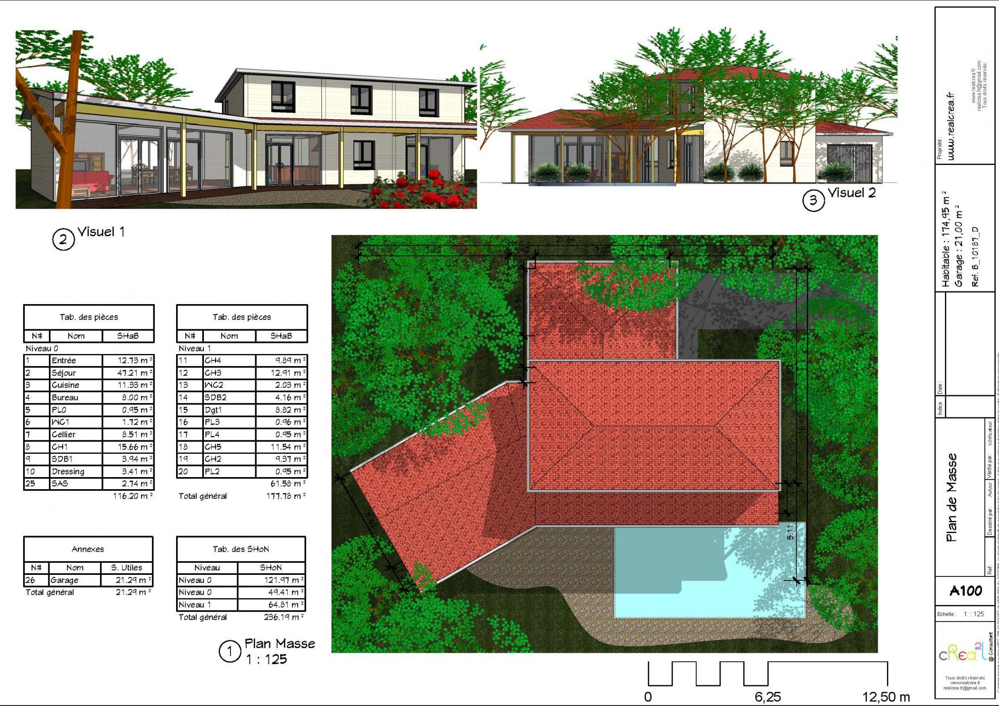 Exemple des visuels réalistes types Maison individuelle, Petit collectif R+2, Complexe des locaux d'Activité