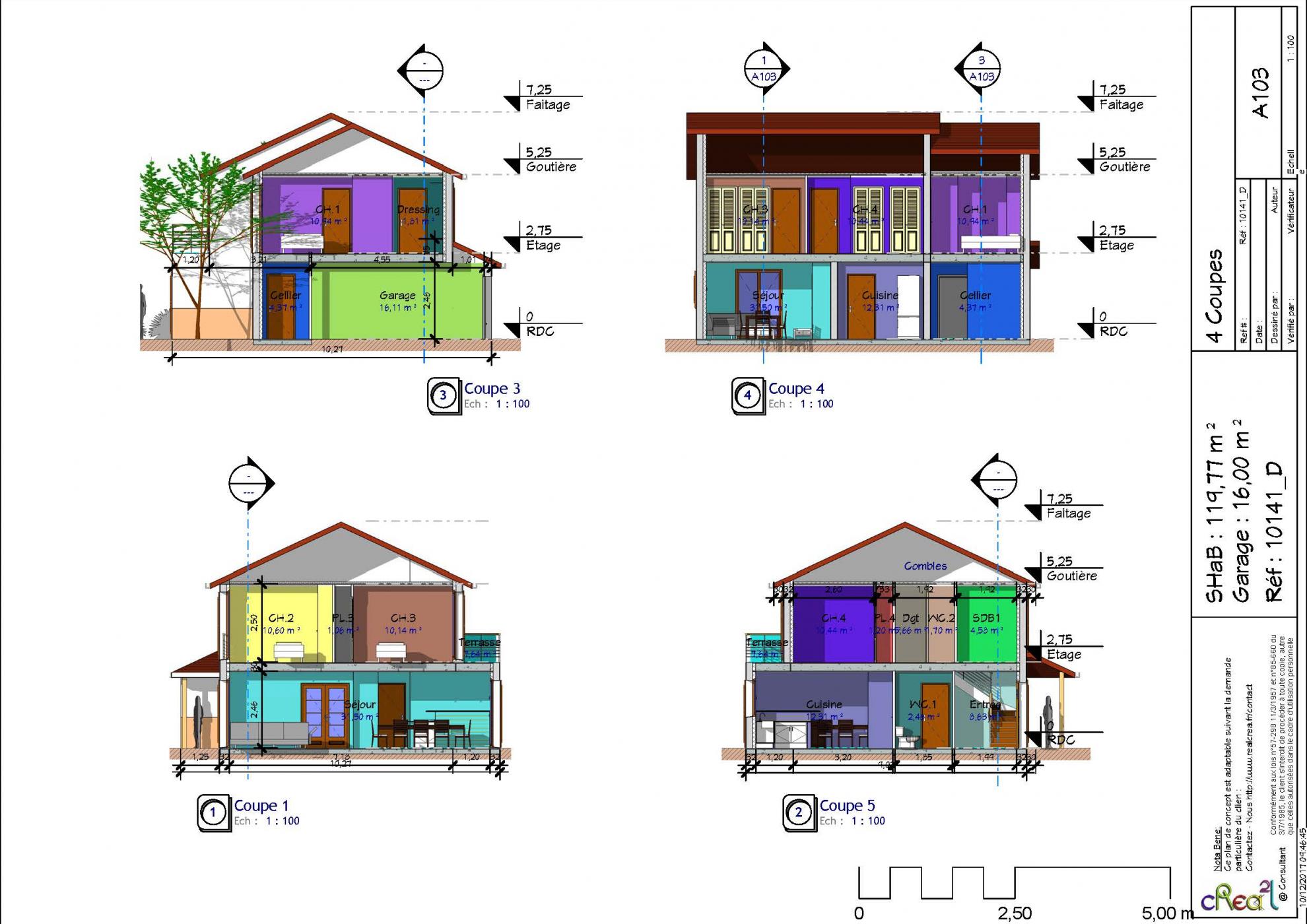 Plan Co_14183_D : Maison contemporaine R+1, 173 M², avec 15 Containers maritimes de 6 M, F5...