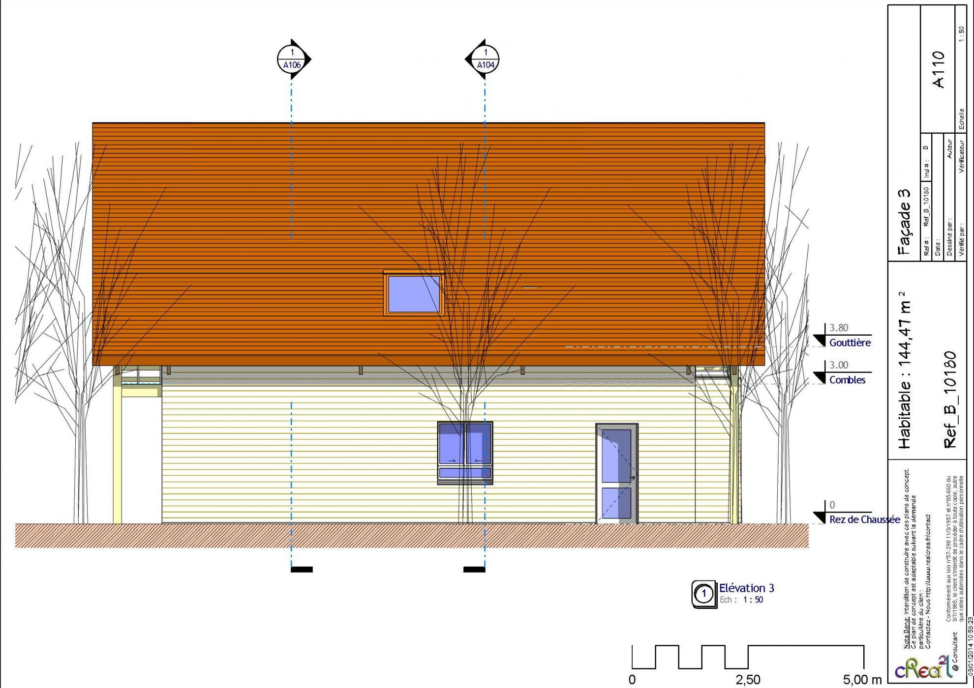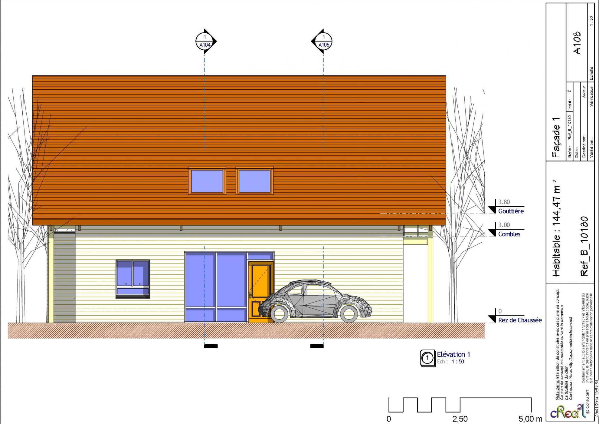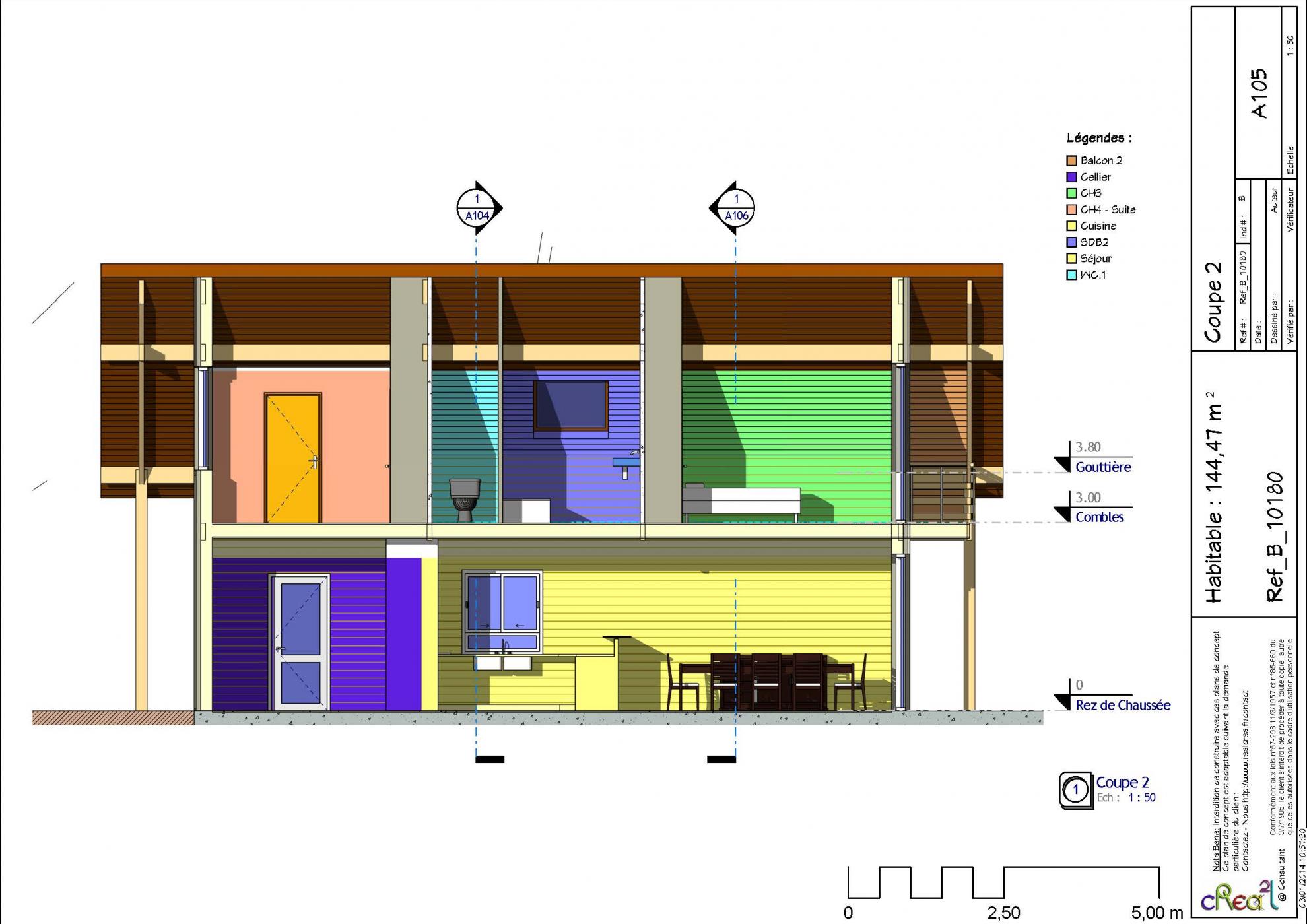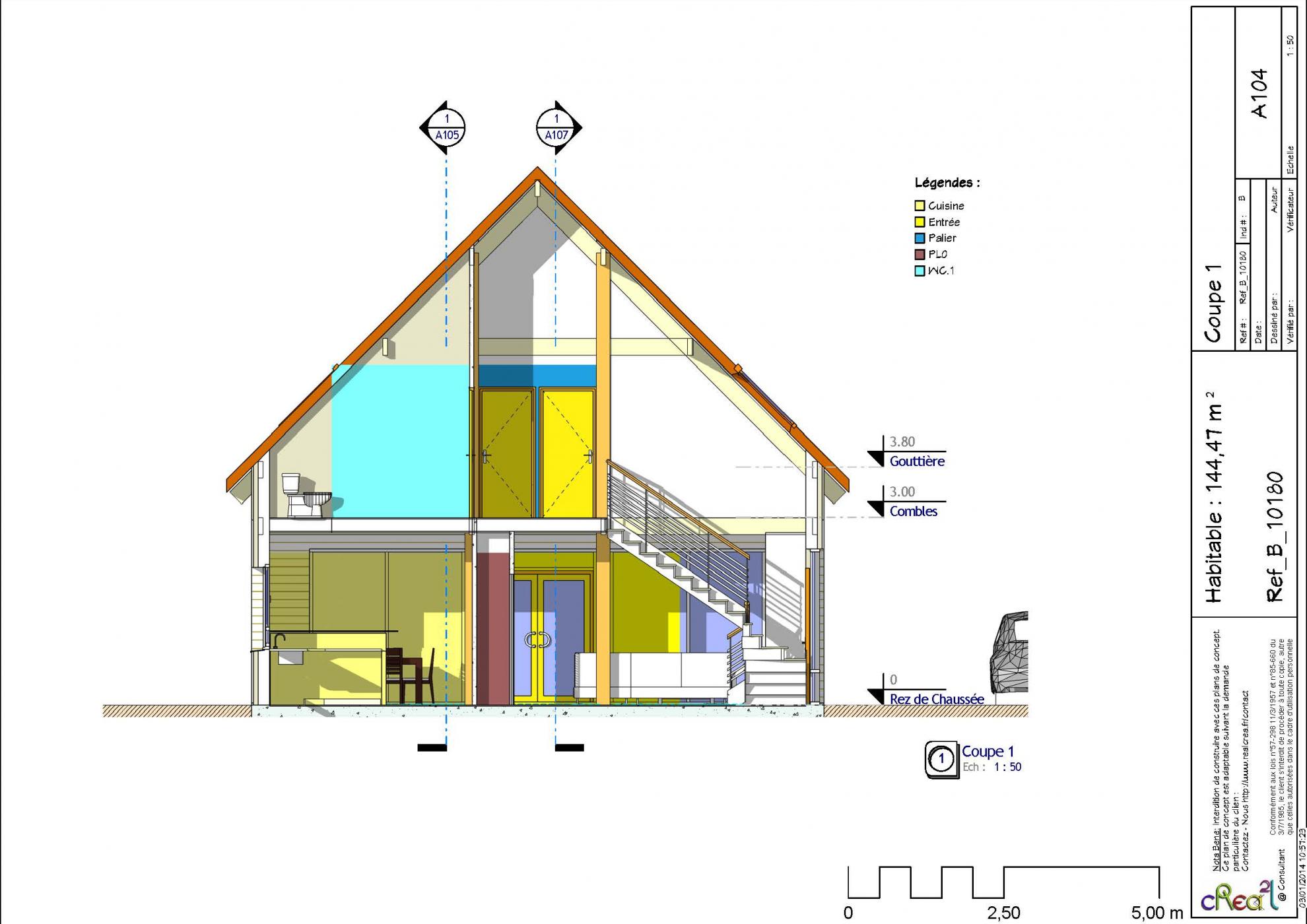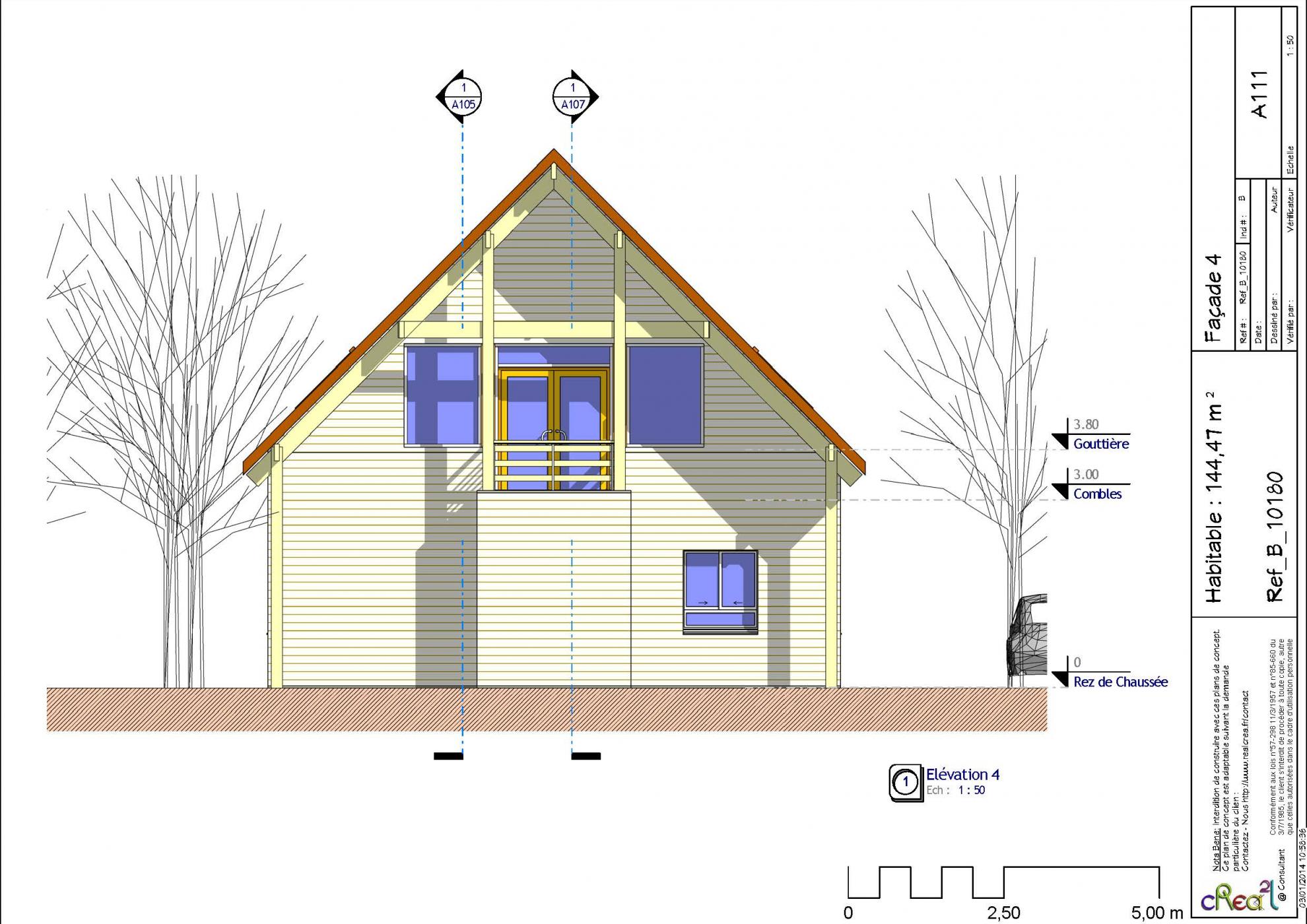Plan B_10180 : Maison à ossature bois, R + Combles, 4 chambres ayant 154 m² habitables.