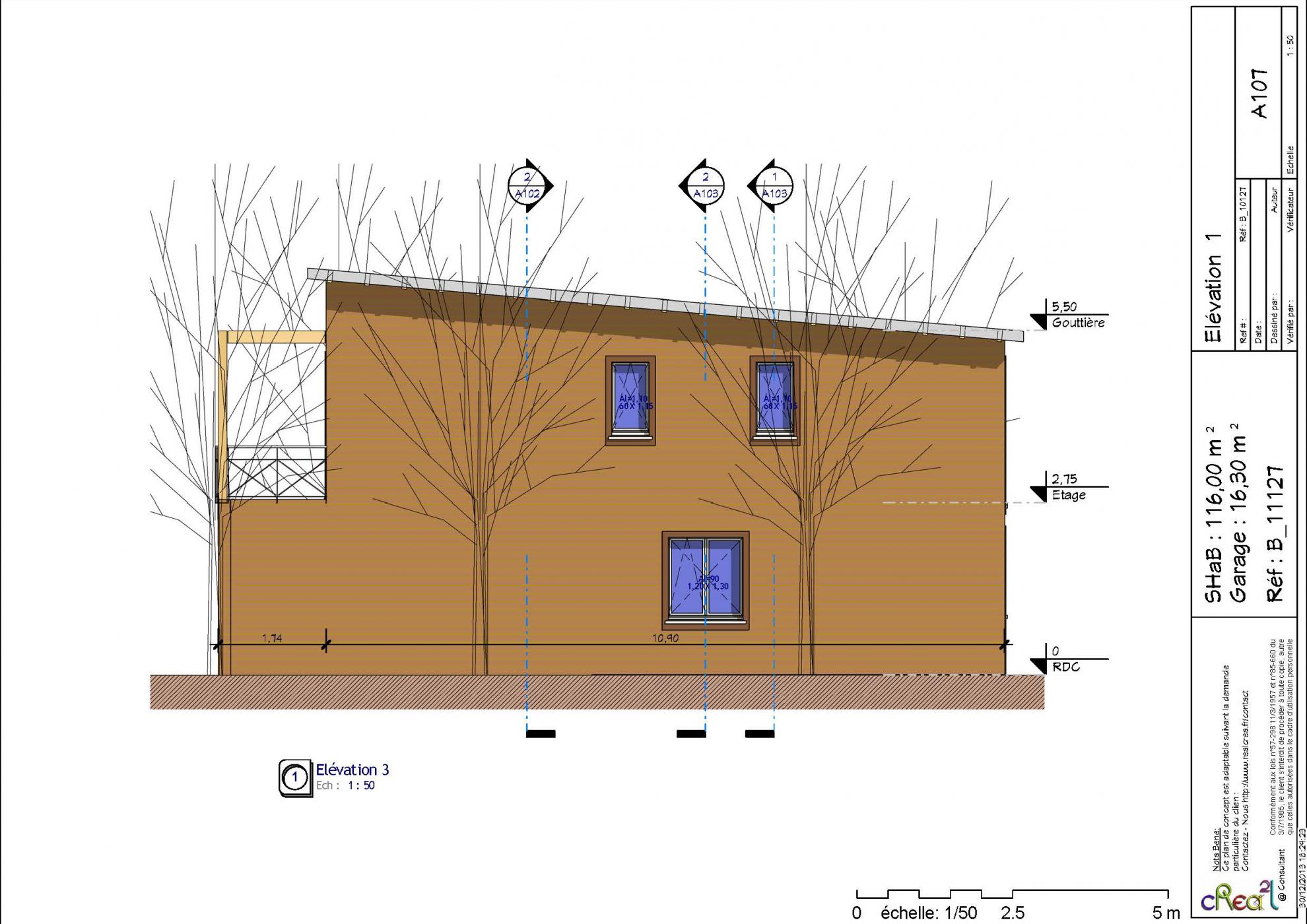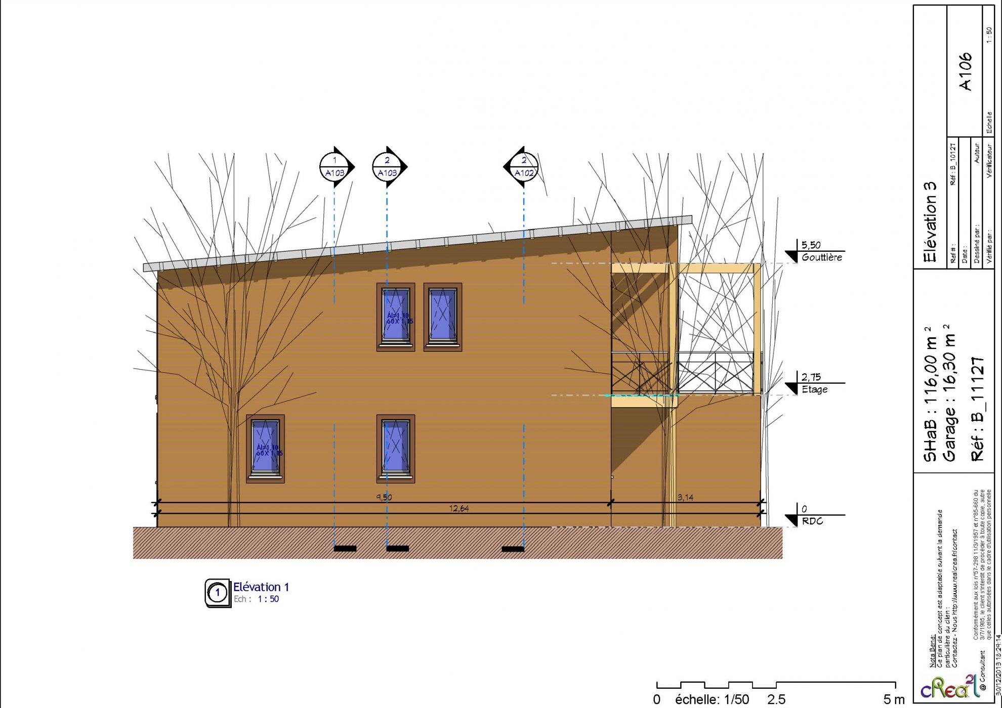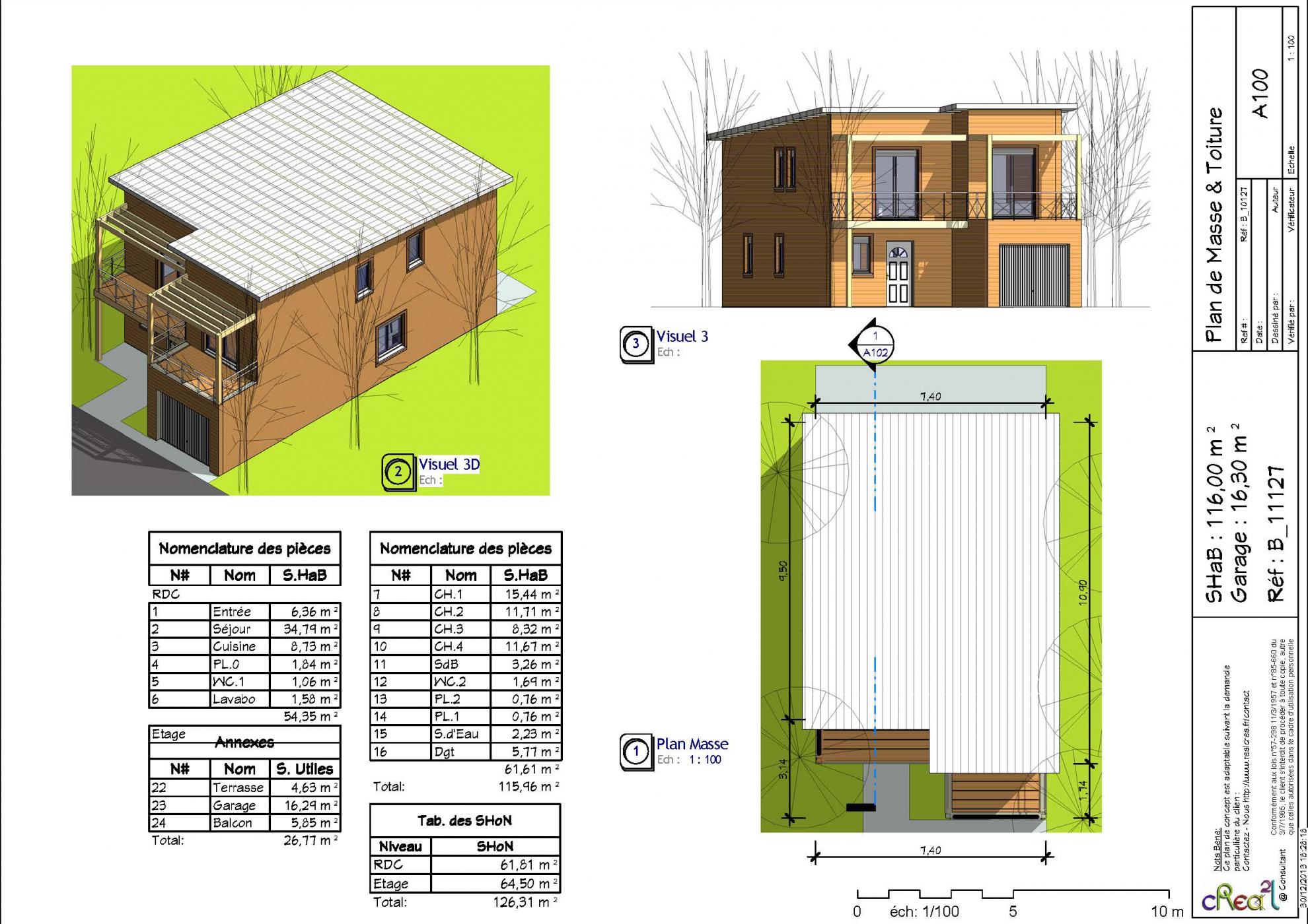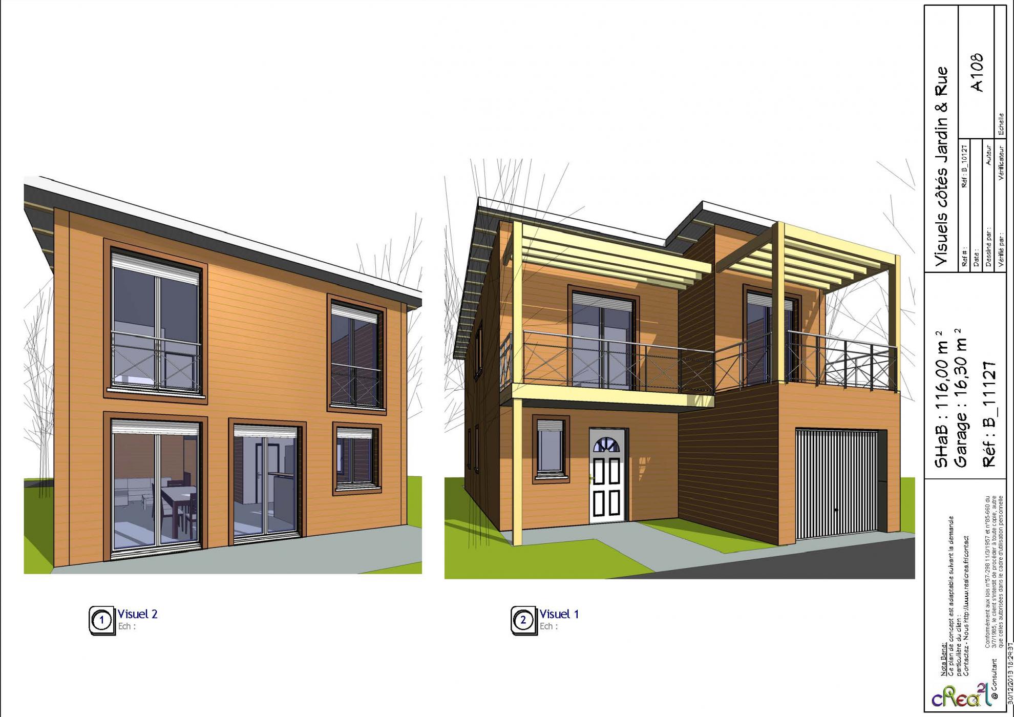 Plan B_11127 : Maison bois contemporaine R+1, 116m² avec Suite parentale, 3 Chambres et Garage