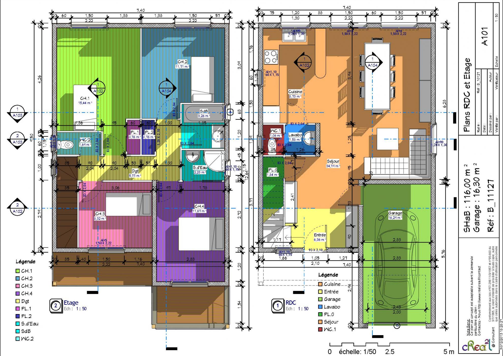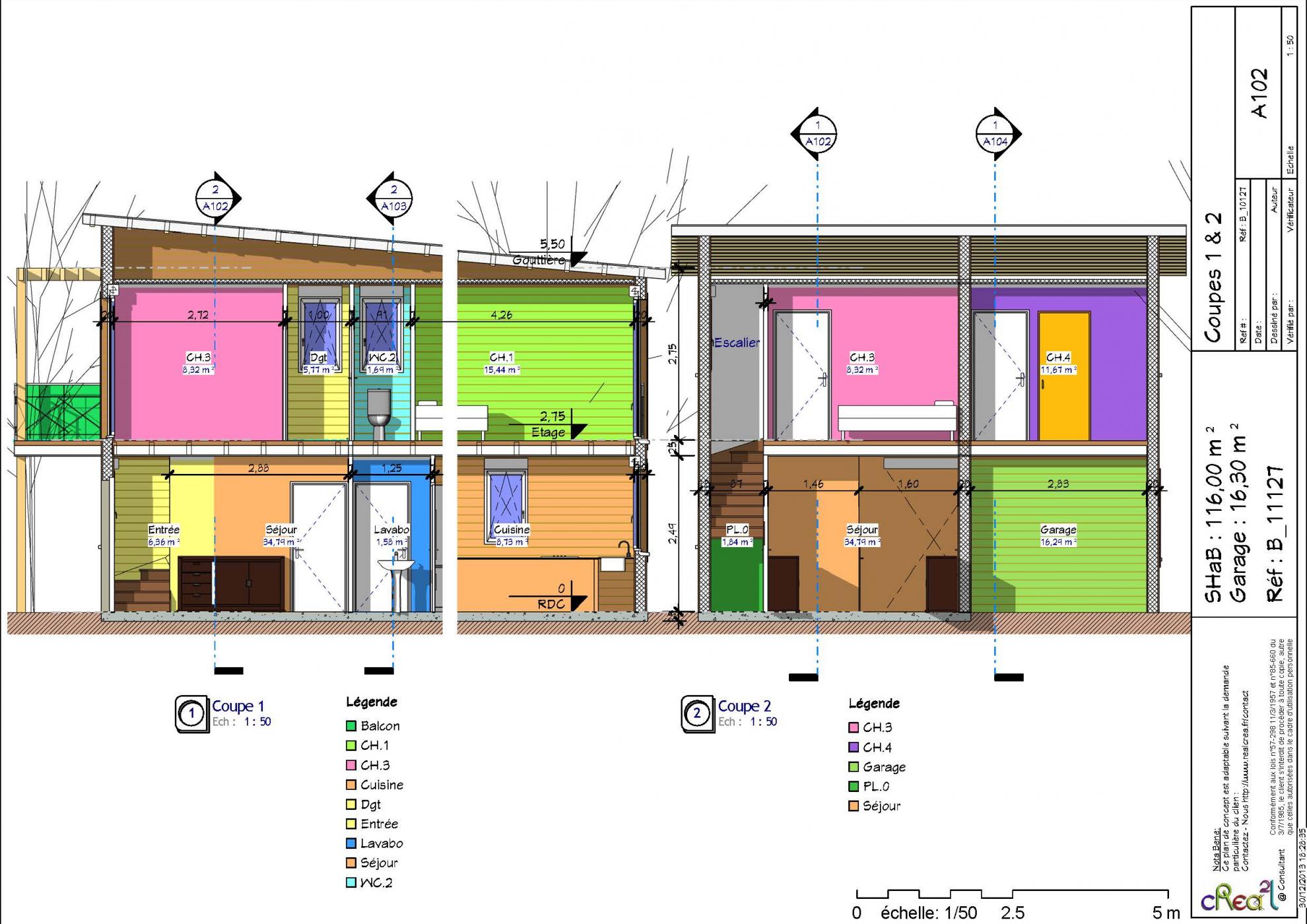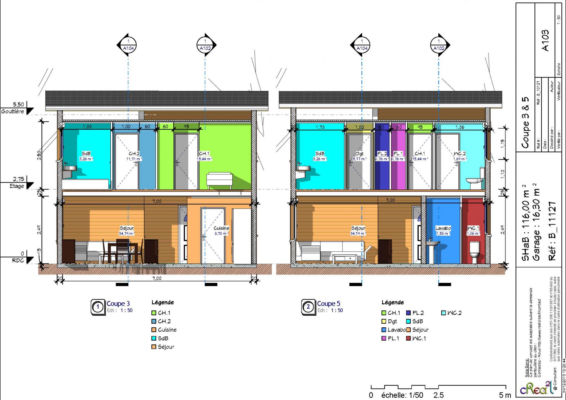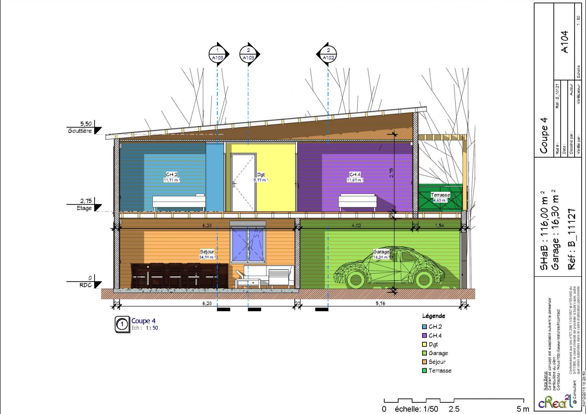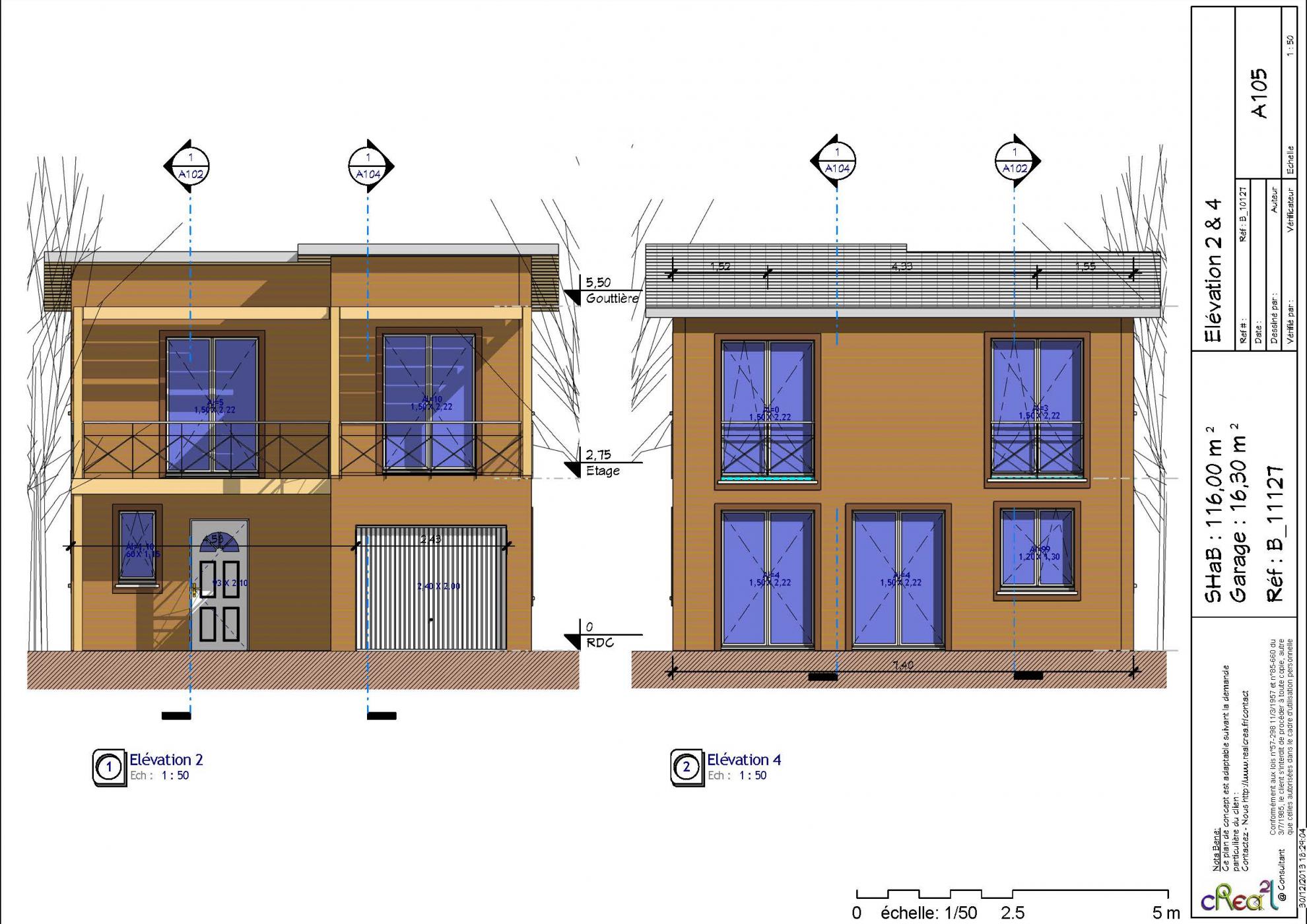 Plan B_11127 : Maison bois contemporaine R+1, 116m² avec Suite parentale, 3 Chambres et Garage
