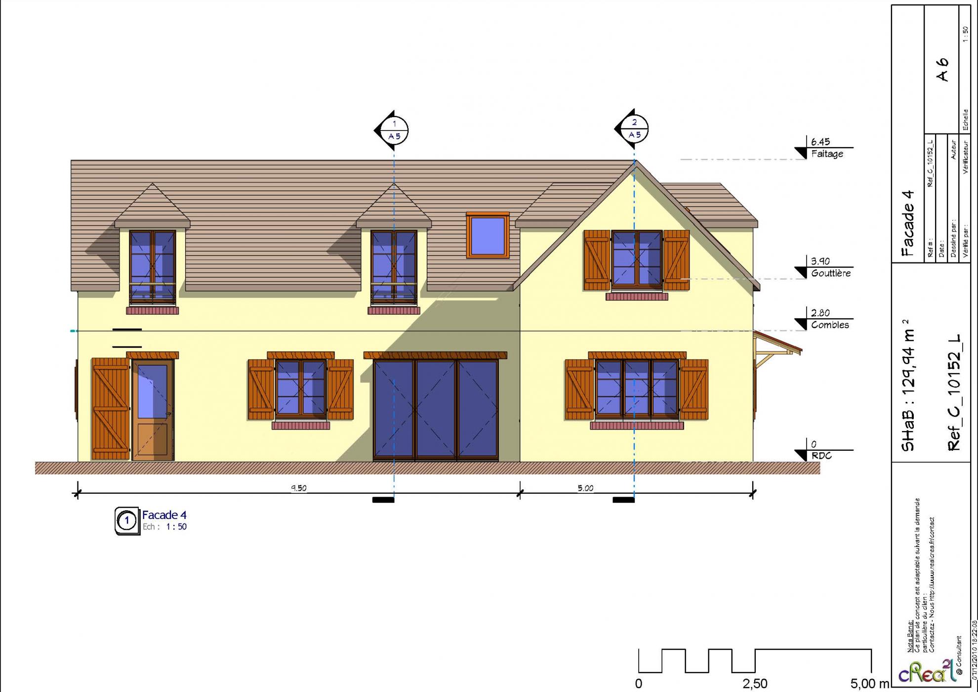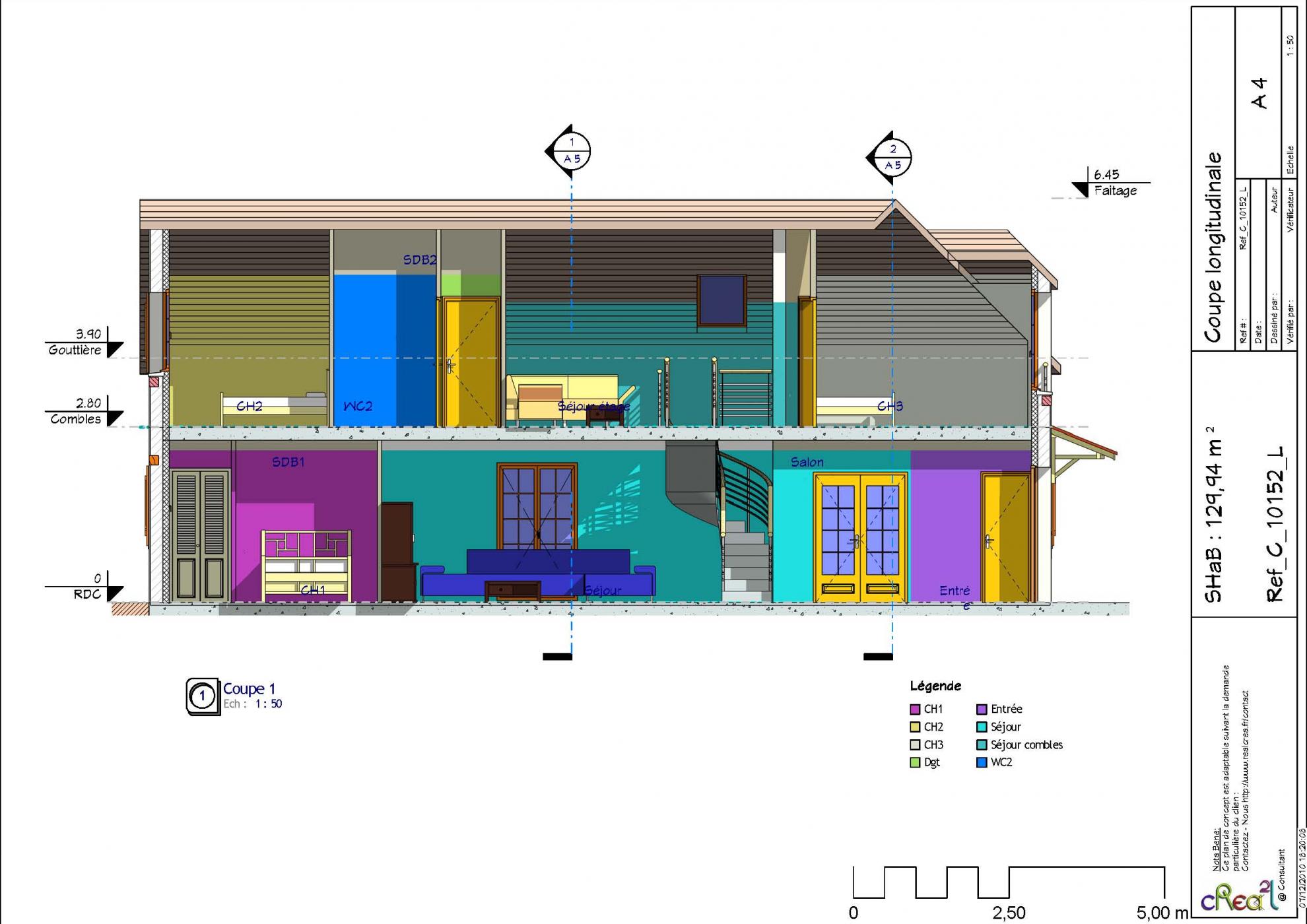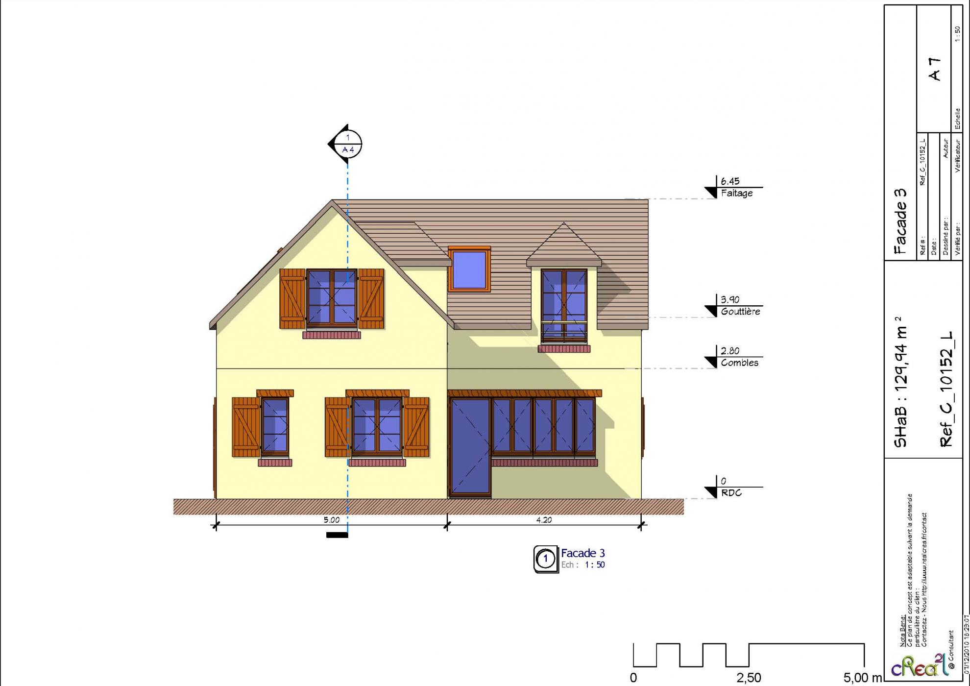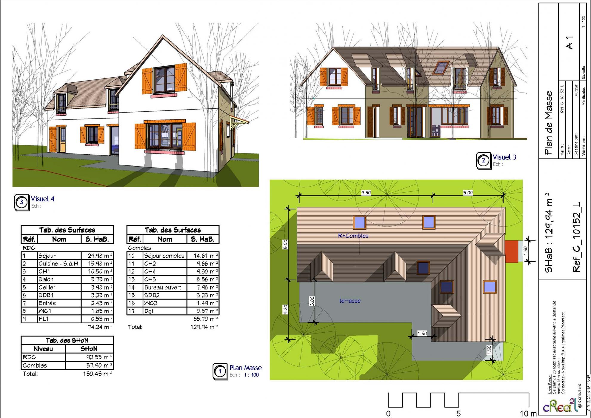 Plan C_10152_L : Maison R + Combles, 4 chambres, ayant 130 m² habitables
