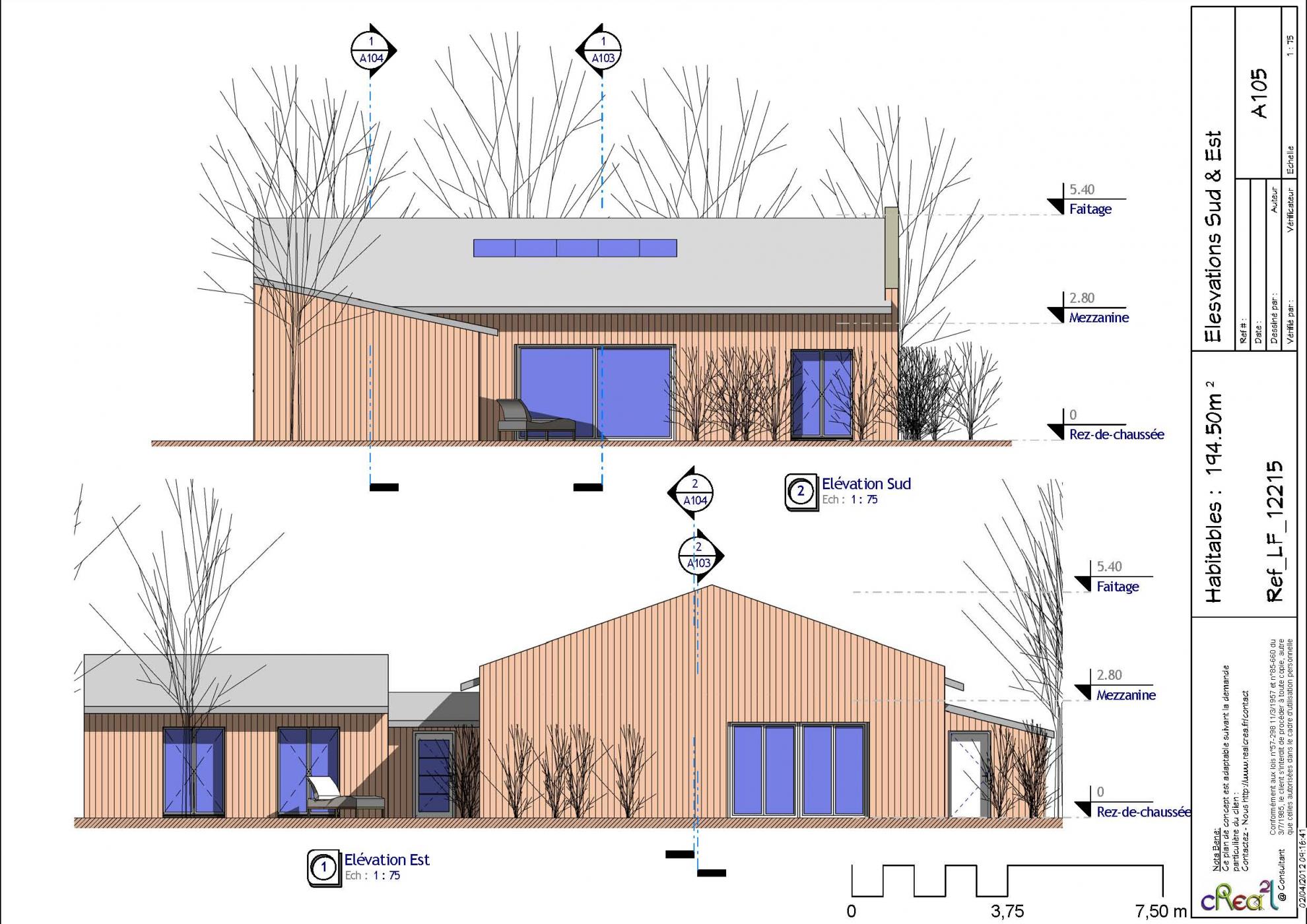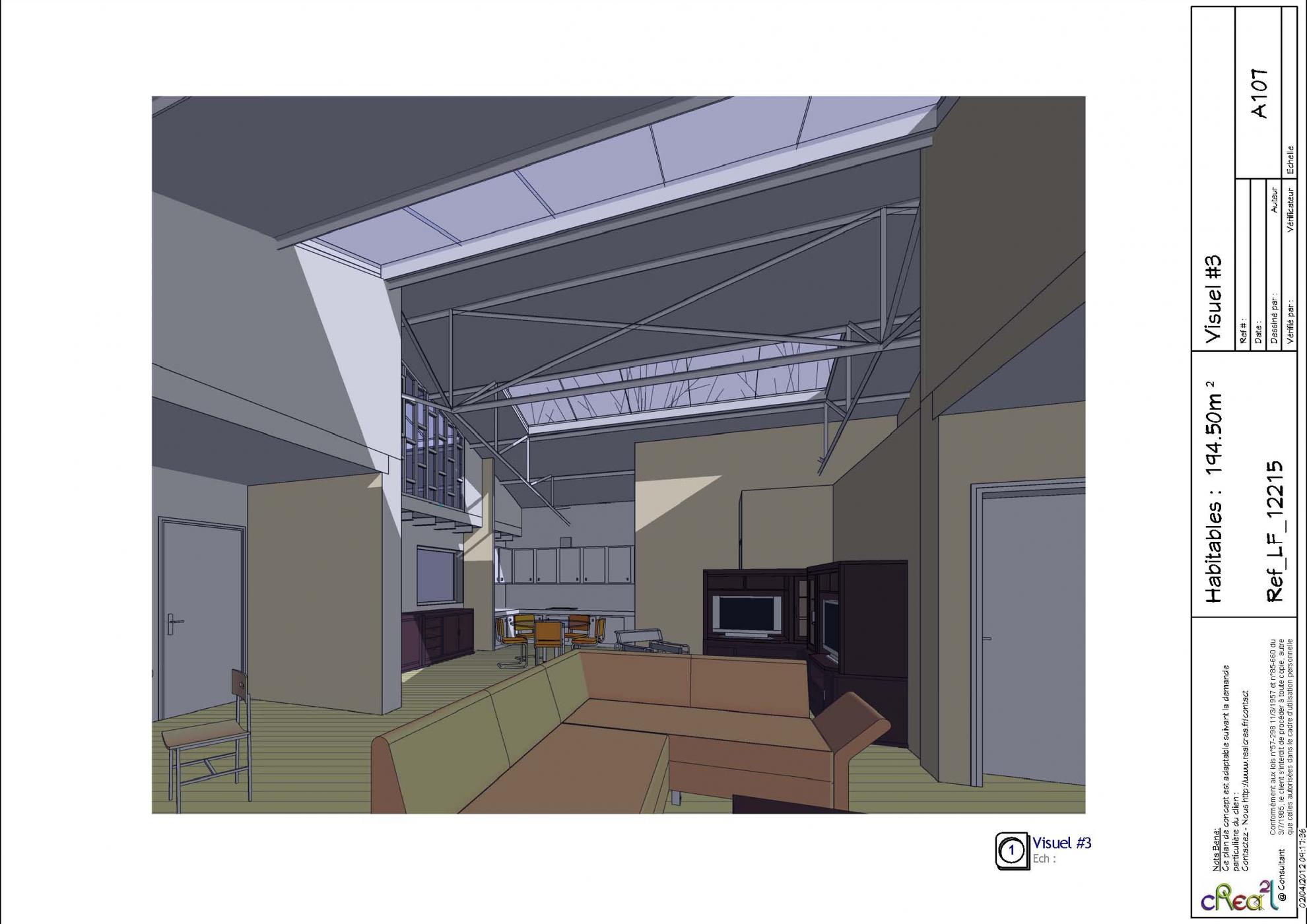Plan LF_12215 : Maison loft moderne en plain-pied et mezzanine, 1 suite parentale, 4 chambres, 195 m² habitables.